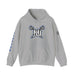 This unisex heavy blend hooded sweatshirt is relaxation itself. Made with a thick blend of cotton and polyester, it feels plush, soft and warm, a perfect choice for any cold day. In the front, the spacious kangaroo pocket adds daily practicality while the hood's drawstring is the same color as the base sweater for extra style points.