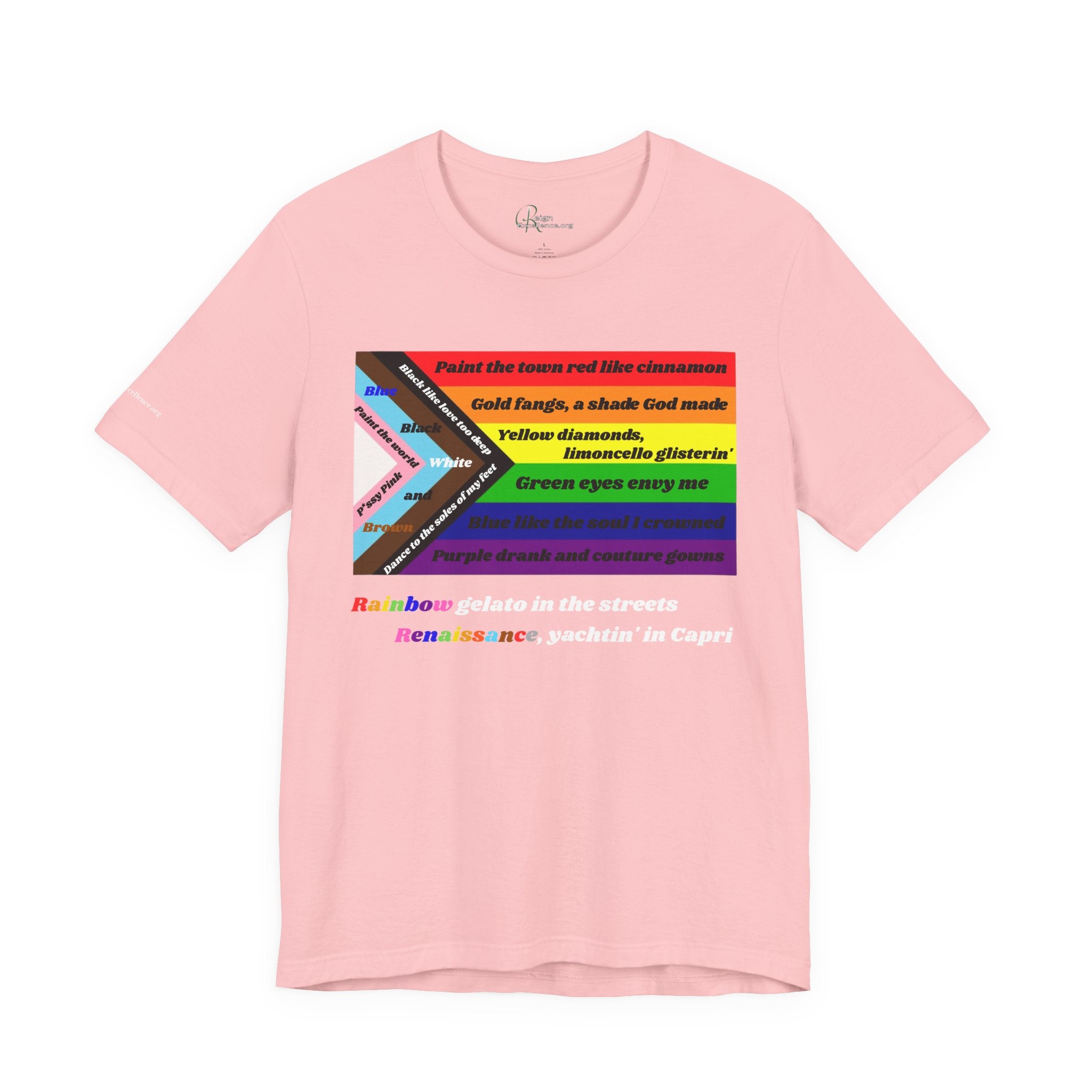 Rock yur pride with Beyonce's 'Cozy' lyrics.This classic unisex jersey short sleeve tee fits like a well-loved favorite. Soft cotton and quality print make users fall in love with it over and over again. These t-shirts have-ribbed knit collars to bolster shaping. The shoulders are tapered for a better fit over time. Dual side seams hold the garment's shape for longer. ReignExcellence.org printed on the right sleeve.